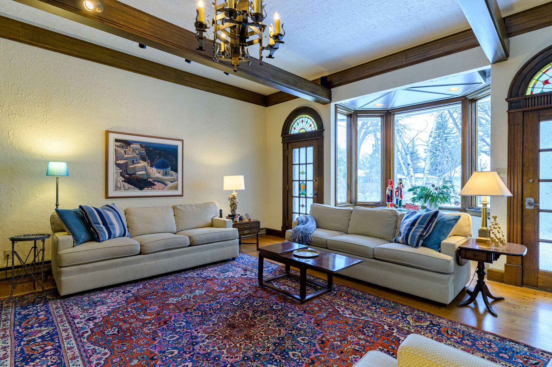 Rare opportunity, seldom offered, spectacular location between Academy and Wellington Crescent. Character & Charm are evident throughout this beautifully maintained Tudor classic with an English Jacobean & Spanish Style interior. Situated on a mature 100 ft lot offering approx 3,700 sf, 5 bedrooms (all on second level), 2 full bathrooms with heated floors, 2 pc on main, & main floor laundry (heated floors). Gorgeous hardwood floors, Wood plank pegged floors in Family Rm, tambour doors in wet bar, wrought iron railings & architectural statements are found in each room of the house. Two fabulous wood burning fireplaces, Dble attached garage, Mosaic marble floors in master bath & all bathrooms have been recently updated. Kitchen offers SS appliances, two ovens, gas range, granite & tile accents, and skylights, offering an abundance of natural light. Must view to appreciate, see Virtual tour, Floor plan & Walkthrough Video.